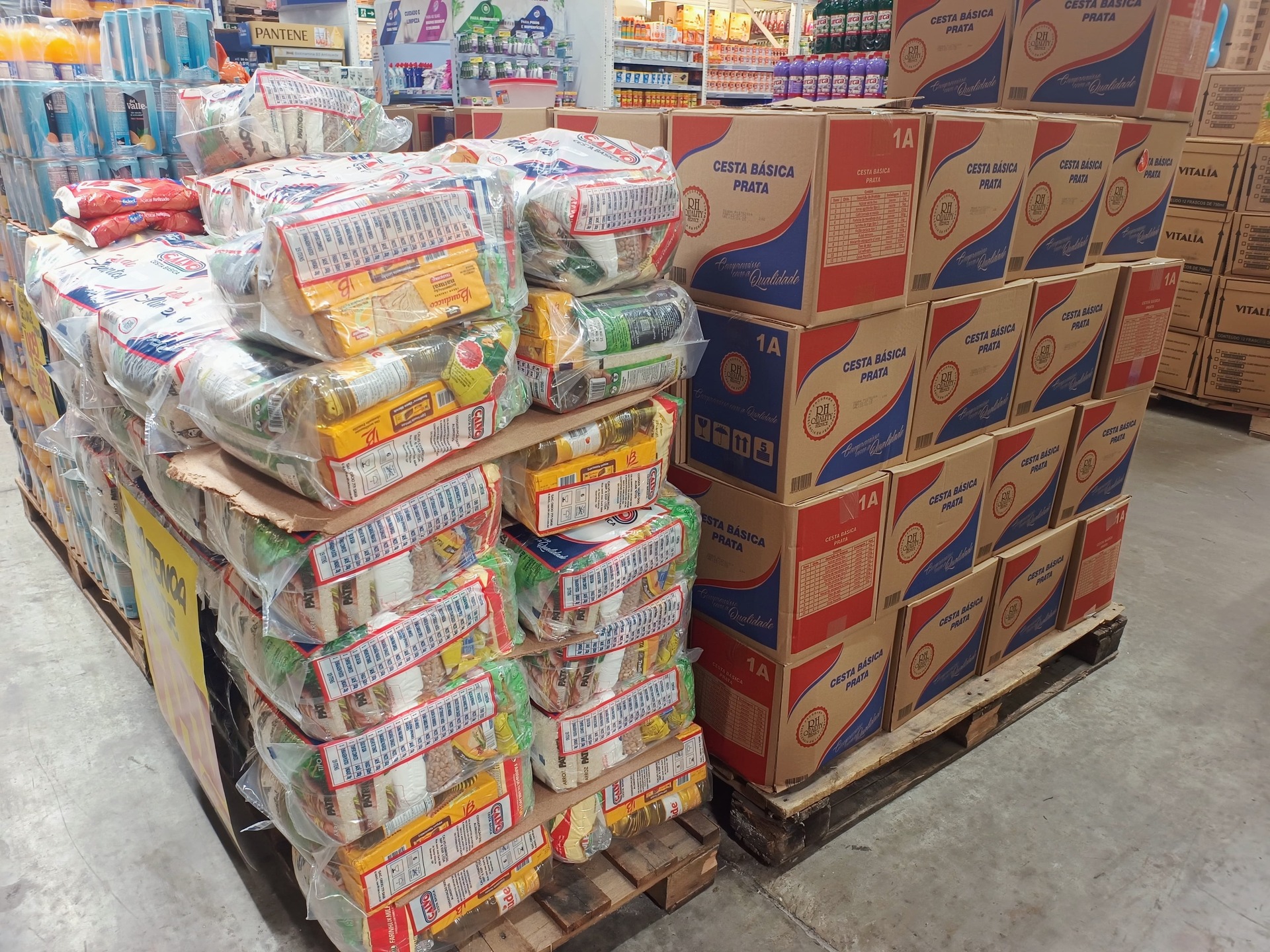 No Atacadão, há cestas pequenas por R$ 81,10, médias por R$ 101,60 e grandes por R$ 168,90. O mercado é um dos poucos locais que disponibilizam o kit alimentício de maior porte.