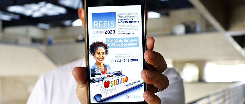 Os descontos são graduais e vão de acordo com a quantidade de parcelas a serem negociadas. Os atendimentos estão sendo feitos via WhatsApp com a assistente virtual Suzy, pelo telefone do setor de Dívida Ativa: (11) 4745-2008. Na página inicial do site suzano.sp.gov.br, o contribuinte pode visualizar um carrossel com vários slides. Um deles é o do Refis, que direcionará para o atendimento virtual.