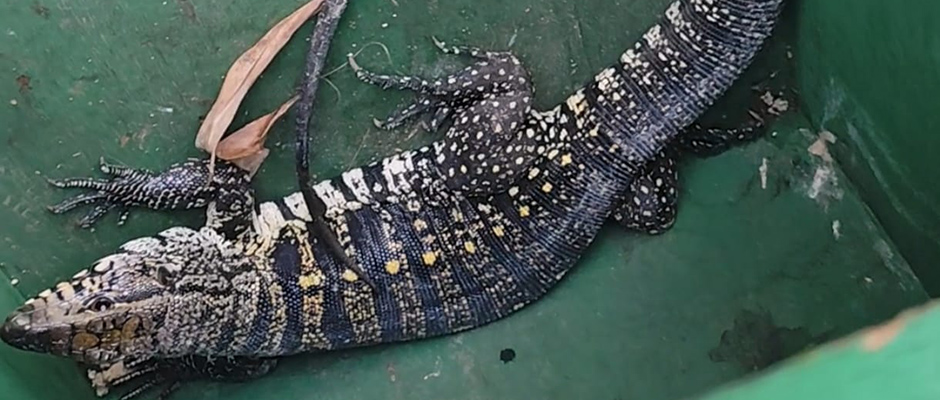 Mais tarde, às 15h40, um lagarto entrou em uma residência da rua Koichi Yoshikawa, no Parque Maria Helena, e a equipe GPA foi acionada para o local.