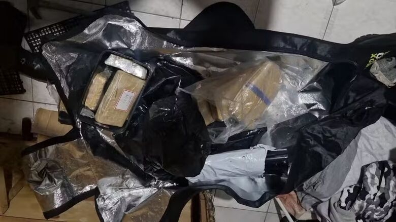 No local, familiares autorizaram a entrada dos policiais. No quarto do suspeito foi localizado cerca de dez quilos de entorpecentes e uma pistola calibre .380 com numeração raspada e munições. O homem foi localizado e confessou ser proprietário dos entorpecentes e da arma.