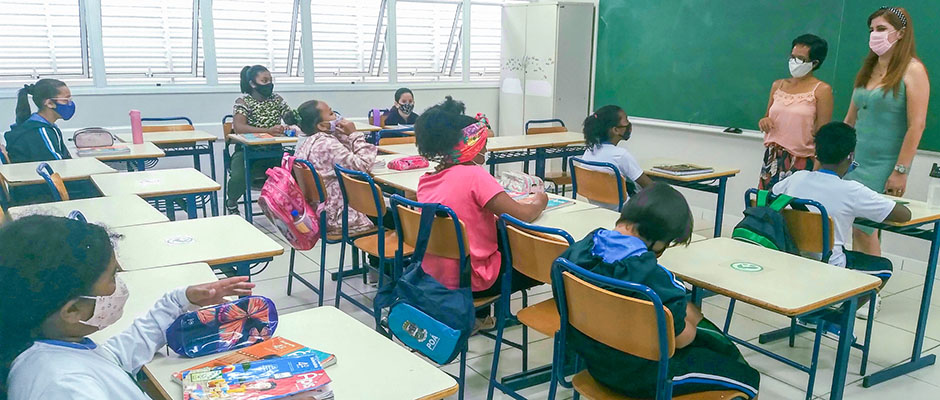 Os alunos da Escola Municipal de Ensino Básico (Emeb) Professora Solange de Jesus Martins, na Vila Varela, retornaram às aulas presenciais na última terça-feira (16/11), de forma híbrida. A unidade escolar era a única do município de Poá que não havia retornado das aulas remotas em razão das obras de reforma e manutenção que seguem sendo realizadas no local.