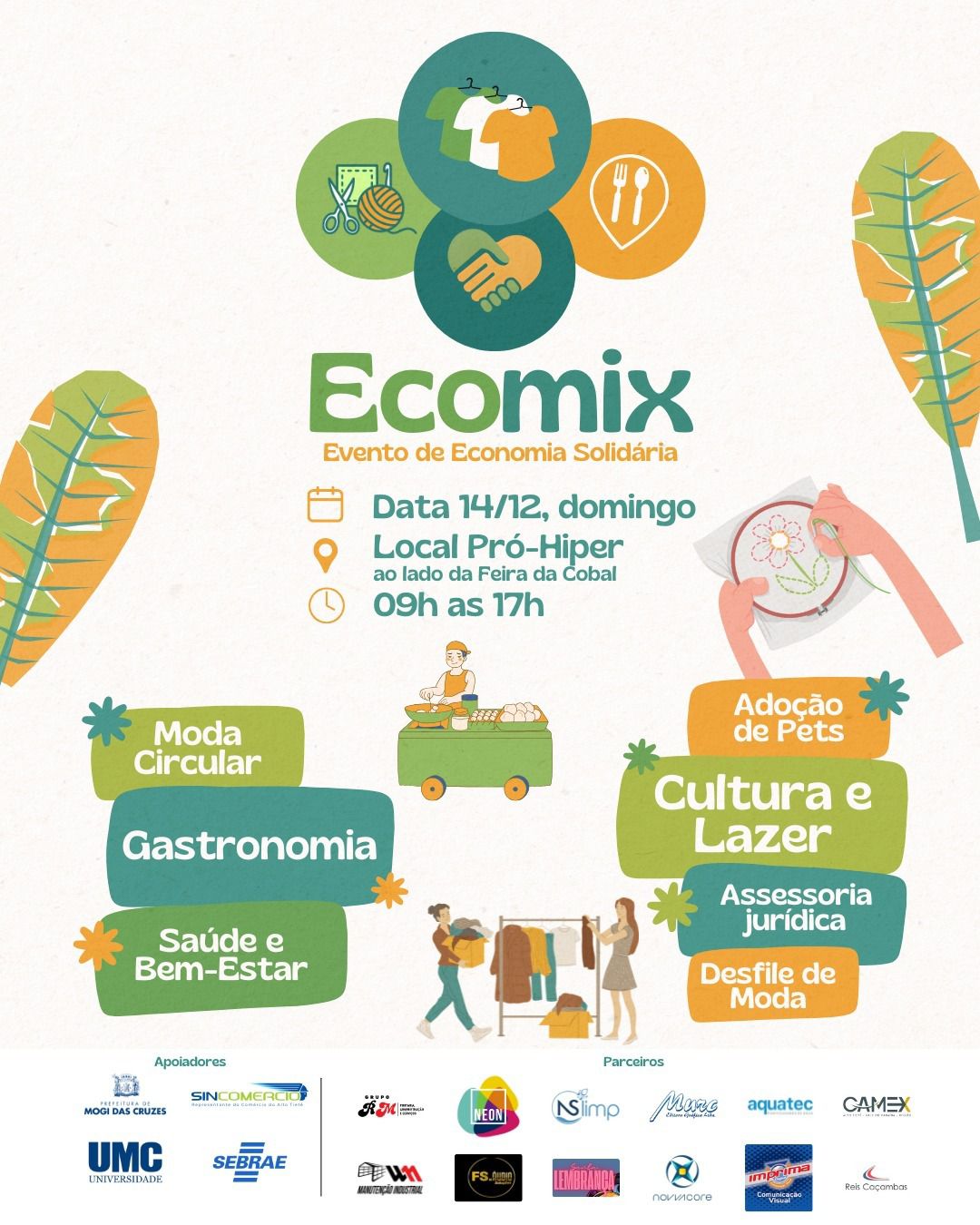 Mogi das Cruzes receberá, no próximo domingo (14), das 9h às 17h, a edição especial da ECOMIX – Evento de Economia Solidária, no espaço do Pró-Hiper, ao lado da Feira da Cobal. Com entrada gratuita, o evento é uma iniciativa voltada ao fortalecimento do empreendedorismo local e da economia solidária, promovendo oportunidades de geração de renda, cultura, saúde e bem-estar para as famílias da cidade.