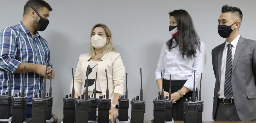 Por meio de emenda parlamentar da deputada Katia Sastre, avaliada em R$ 100 mil, foi possível comprar 15 novos rádios transmissores para a GCM de Mogi - (Foto: Divulgação/PMMC)