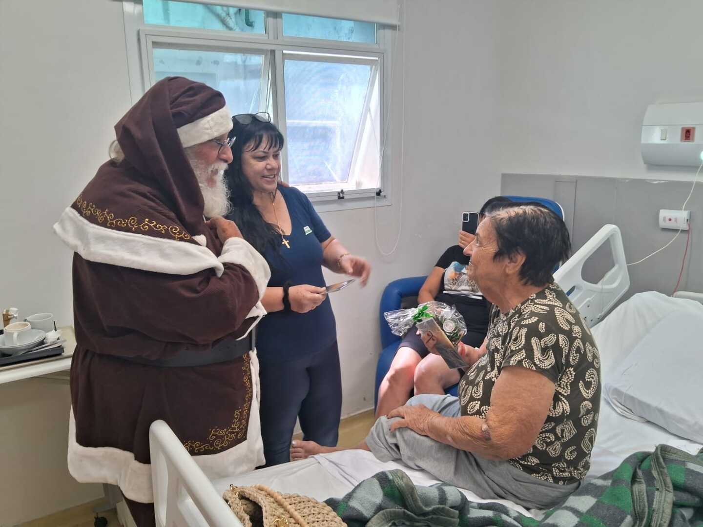 Durante a sua visita, o bom velhinho tirou de pacientes e acompanhantes sorrisos de gratidão. Foi o caso de Roseli Correa da Silva, filha e acompanhante de Clotilde da Silva, 88 anos, que se emocionou ao ver sua mãe recebendo a visita.