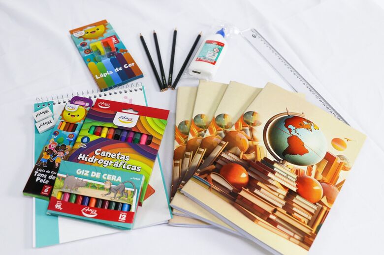 Cada kit escolar é composto por utensílios que auxiliam no desenvolvimento dos estudantes e cerca de 19 mil estudantes serão beneficiados com os materiais.